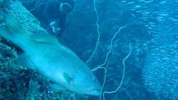 ミカドウミウシは、黒地に黄色い縁取りが美しい大きなウミウシです。大きな体でのんびり這う姿は迫力がありますね。
