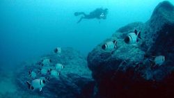 ニザダイは、銀色に光る体と大きな背びれが特徴の魚です。群れで泳ぐ姿はとても迫力があり、ダイビング中に出会うと嬉しいですね。名前の由来は背びれがカミソリのように鋭い「ニザ(カミソリ)」から来ています。