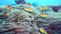 クマノミは、鮮やかなオレンジの体に白い縦帯が特徴的で、イソギンチャクと共生する可愛い魚ですね。イソギンチャクの触手に守られて、仲良く暮らす姿はまるでおとぎ話のようです。ダイビング中に見つけると嬉しくな