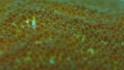 クマノミの卵は、オレンジ色に輝く小さな粒々でとても可愛いです。親が大切に守っている姿を見ると癒されますね。