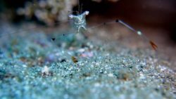 オシャレカクレエビは、白い体に赤い模様がとても美しい小さなエビです。擬態が上手で見つけると嬉しい気持ちになりますね。
