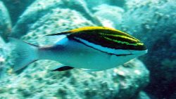 クロフチスズキベラは、白い体に黒い縁取りが特徴の美しい魚です。根周りを元気に泳ぐ姿はとても可愛いですね。