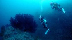 オオイソバナは、赤くて大きな扇状に広がる姿がとても美しいサンゴの仲間です。潮の流れに揺られる姿はまるで水中の花束のようですね。