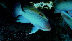 ケラマハナダイは、鮮やかなピンク色の体がとても美しい小魚です。群れで泳ぐ姿はとても華やかですよ。