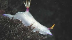 シンデレラウミウシは、紫やピンクの体色がとても美しいウミウシです。まるでおとぎ話の中の主人公のように優雅で、見つけると嬉しくなる存在です。大きな個体は見応えがあります。