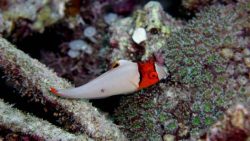 ツマニケボリは、小さな体と鮮やかな模様が可愛い巻貝の仲間です。岩陰やサンゴの隙間にひっそり隠れていて、見つけるとちょっと嬉しい気分になりますね。模様は個体によって少しずつ違うので観察するのも楽しいです