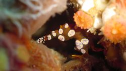 オニサザエは、大きな殻を持つサザエの仲間で、産卵の時期になると砂地や岩の隙間に卵塊を産み付けます。卵塊は白くふわふわした綿のような見た目で、とても不思議な光景ですね。産卵中のオニサザエはとても静かで、