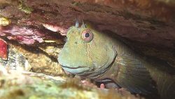コケギンポは、岩の穴から顔を出す姿がとても可愛い魚です。大きな瞳とひょうきんな表情はとても癒されますね。