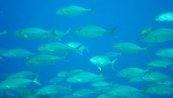 アジは、銀色の体が光を反射してとても美しい魚です。群れで泳ぐ姿はとても迫力がありますね。