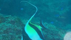 ツノダシは、白と黒の縞模様と長い背びれがとても美しい魚です。優雅に泳ぐ姿はとても癒されますね。