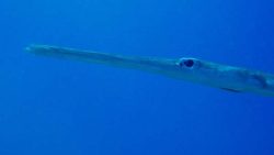 アオヤガラは長い口先と細長い体が特徴の魚ですね。水中でゆっくりとホバリングするように泳ぐ姿はとても優雅です。青みがかった体色が光を反射するとキラキラと美しく、まるで水中の飛行船のようです。小魚の群れと