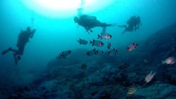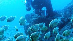 B-POINTから2分のところにあるが潮通しがよく深い上級ポイント!マツカサウオ、オキノスジエビ、クエなど被写体が多い!