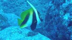 オニハタタテダイは、長い背びれと白黒の体がとても目立つ可愛い魚です。ペアで泳ぐ姿はとても癒されますね。