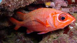 トガリエビスは、赤い体と大きな目が特徴の可愛い魚です。岩陰に隠れている姿はとても可愛いですよ。