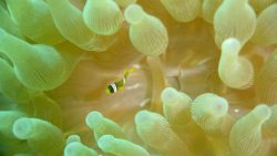 クマノミは、イソギンチャクと一緒に暮らす可愛い魚です。オレンジ色の体と白い縞模様がとても愛らしく、見つけるとほっこりしますね。