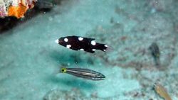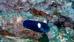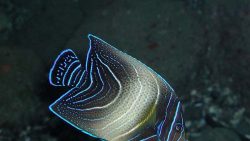 アブラヤッコは、青い体にオレンジの模様がとても綺麗な魚です。ゆったり泳ぐ姿はとても優雅で癒されますね。