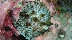 インターネットウミウシは、黒い体に白い網目模様が特徴のとてもおしゃれなウミウシです。ゆっくりと海底を這う姿はとても可愛く、見つけるとワクワクしますね。ネットのような模様は、見れば見るほど面白いです。