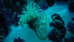 クチナシツノザヤウミウシは、白い体に黄色い突起が特徴のとても可愛いウミウシです。見つけると嬉しくなるくらい可愛らしく、ゆっくりと動く姿はまるで小さな妖精のようです。