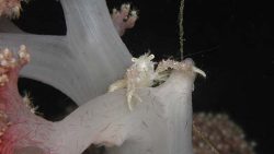 ウミウシカクレエビは、ウミウシに寄り添って暮らす小さなエビです。ウミウシの上にちょこんと座る姿はとても可愛いですね。