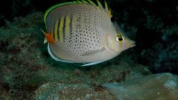シチセンチョウチョウウオは、体の7本の線が美しい可愛い魚です。サンゴの間をひらひら泳ぐ姿は癒されますね。