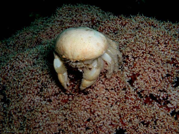 昼間は岩陰に潜んでおり、夜になると餌を探して出てきます。ときには貝や小魚なども食べることがあります。