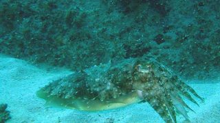 普段は中層を泳ぎながら獲物を探していて、時に岩陰でじっとしていることもあります。