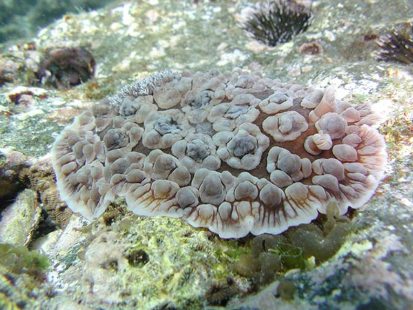 コウシンウミウシは、淡い色合いに赤い斑点が特徴のウミウシです。まるで着物を着たような華やかさがあり、ゆっくり動く姿はとても可愛いですね。見つけるとじっくり観察したくなります。