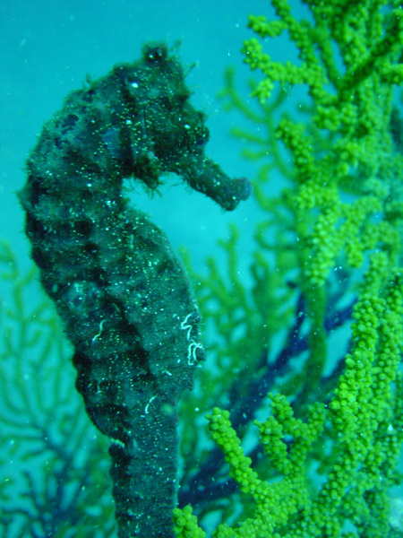 普段は尾で海藻やサンゴにしっかり巻きついて過ごしています。