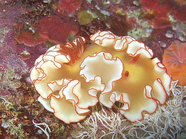 アカメイロウミウシ 末粕鼻 2025.05.25 [ 末粕鼻 ][ 初級 ] 体長 3〜5cm程度 水深 5〜30m程度 生息環境 サンゴ礁や岩礁の壁面や根周り 分類 裸鰓類・フジタウミウシ科 アカメイロウミウシは、赤と白のコントラストがとても綺麗なウミウシです。ゆっくりと這う姿はとても可愛く、見つけると嬉しくなりますね。 食べ物 付着藻類や微小な生物を食べます。 日頃の生活 日中は壁面をのんびり移動しています。 まめ知恵袋 赤と白の体色は海中でも目立ちますね。 撮影する時のコツ マクロ撮影で色のコントラストをしっかり写すと綺麗な写真になります。 [ 末粕鼻 ][ 初級 ]