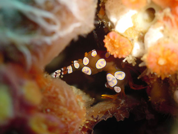 イソギンチャクモエビ ブクブクビーチ 2025.05.25 [ ブクブクビーチ ][ 初級 ] 体長 2〜3cm程度 水深 5〜20m程度 生息環境 イソギンチャクやサンゴの隙間 分類 十脚目・モエビ科 イソギンチャクモエビは、白い斑点模様と大きな尾がとても可愛い小さなエビです。イソギンチャクと一緒に暮らしている姿はとても微笑ましいですね。 食べ物 プランクトンや微小な有機物を食べます。 日頃の生活 イソギンチャクの間にひっそり隠れています。 まめ知恵袋 白い斑点模様はとても目立ちますよ。 撮影する時のコツ マクロ撮影で模様をしっかり写すと可愛い写真になります。 [ ブクブクビーチ ][ 初級 ]