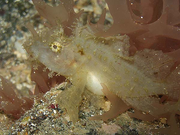 ボロカサゴの幼魚は、体にヒラヒラした皮弁がついていてとてもユニークな姿です。砂地や根周りでひっそり暮らす姿はとても可愛いですよ。