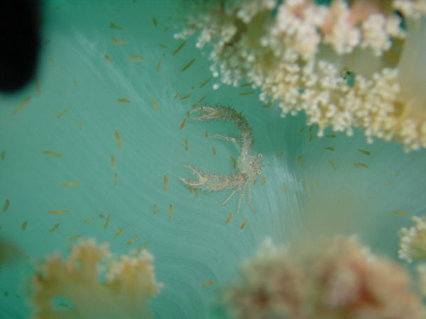 ヒヅメコシオリエビ 中ノ瀬 2025.05.27 [ 中ノ瀬 ][ 中級 ] 体長 2〜3cm程度 水深 5〜30m程度 生息環境 サンゴ礁や岩礁の隙間や根周り 分類 十脚目・コシオリエビ科 ヒヅメコシオリエビは、長い脚と小さな体がとても可愛い小さなエビです。岩の隙間にひっそりと暮らす姿は癒されますね。 食べ物 微小な有機物やプランクトンを食べます。 日頃の生活 隙間にじっとしていて、時々脚を動かします。 まめ知恵袋 脚の長さはとても特徴的で面白いですよ。 撮影する時のコツ マクロ撮影で脚の動きをしっかり写すと可愛い写真になります。 [ 中ノ瀬 ][ 中級 ]