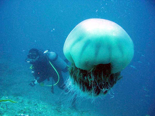 エチゼンクラゲ 網代 2025.05.27 [ 網代 ][ 中級 ] 体長 30〜50cm程度 水深 0〜10m程度 生息環境 沿岸や湾内の浅場 分類 根口クラゲ目・根口クラゲ科 エチゼンクラゲは、大きな丸い傘と長い触手が特徴のクラゲです。海の中をふわふわと漂う姿はとても幻想的で癒されますね。 食べ物 プランクトンを主に食べます。 日頃の生活 水面付近を漂いながらゆっくり動きます。 まめ知恵袋 大きな傘はまるで海の花のようですよ。 撮影する時のコツ 逆光を活かして透明感を引き立てると綺麗な写真になります。 [ 網代 ][ 中級 ]