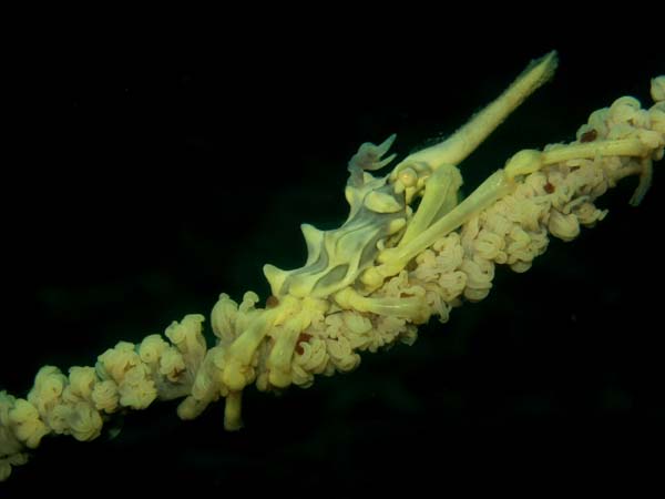 イボイソバナガニは、イソバナに寄り添うように暮らす小さなカニです。イソバナと一体化している姿はとても面白いですね。