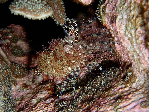 サンゴモエビ B-POINT前 2025.05.27 [ B-POINT前 ][ 初級 ] 体長 2〜3cm程度 水深 5〜30m程度 生息環境 サンゴ礁や岩礁の隙間や根周り 分類 十脚目・モエビ科 サンゴモエビは、真っ赤な体と小さな目が可愛いエビです。サンゴの隙間にひっそり暮らす姿は癒されますね。 食べ物 プランクトンや微小な有機物を食べます。 日頃の生活 サンゴの隙間でじっとしていて、時々ゆっくり動きます。 まめ知恵袋 赤い体色はとても目立ちますよ。 撮影する時のコツ マクロ撮影で真っ赤な体をしっかり写すと綺麗な写真になります。 [ B-POINT前 ][ 初級 ]