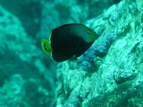 キヘリキンチャクダイ タマリ瀬 2025.05.27 [ タマリ瀬 ][ 中級 ] 体長 10〜15cm程度 水深 5〜30m程度 生息環境 サンゴ礁や岩礁の根周り 分類 スズキ目・キンチャクダイ科 キヘリキンチャクダイは、青い体に黄色い背びれのコントラストがとても美しい魚です。サンゴの間を優雅に泳ぐ姿はとても癒されますね。 食べ物 藻類や小さな無脊椎動物を食べます。 日頃の生活 根周りをゆっくり泳ぎながら餌を探しています。 まめ知恵袋 鮮やかな青と黄色の体色はとても目立ちますよ。 撮影する時のコツ ワイドでもマクロでも体色を活かすと綺麗な写真になります。 [ タマリ瀬 ][ 中級 ]