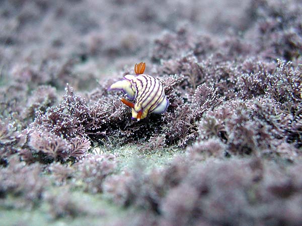クチナシイロウミウシ 平瀬 2025.05.27 [ 平瀬 ][ 中級 ] 体長 3〜5cm程度 水深 5〜30m程度 生息環境 サンゴ礁や岩礁の壁面や根周り 分類 裸鰓類・フジタウミウシ科 クチナシイロウミウシは、白い体に黄色い縁取りがとても可愛いウミウシです。ゆっくりと移動する姿はとても癒されますね。 食べ物 付着藻類や微小な生物を食べます。 日頃の生活 日中は壁面や根の上をのんびり移動しています。 まめ知恵袋 白と黄色のコントラストはとても綺麗ですよ。 撮影する時のコツ マクロ撮影で縁取りをしっかり写すと可愛い写真になります。 [ 平瀬 ][ 中級 ]
