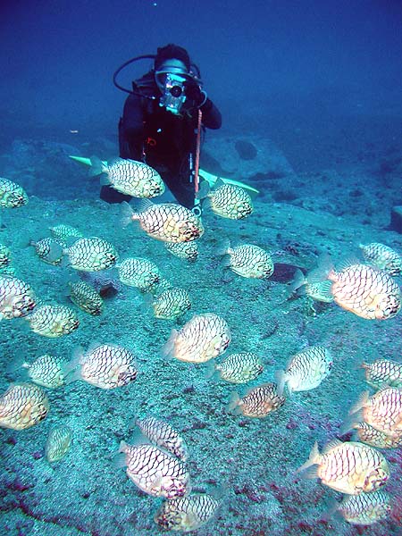 マツカサウオ 小島 2025.05.27 [ 小島 ][ 上級 ] 体長 10〜15cm程度 水深 5〜30m程度 生息環境 サンゴ礁や岩礁の根周り 分類 キンメダイ目・マツカサウオ科 マツカサウオは、金色の鱗が松かさのように輝く美しい魚です。岩陰でじっとしている姿はとても神秘的ですよ。 食べ物 小さな甲殻類や微小な生物を食べます。 日頃の生活 根周りの岩陰に隠れてじっとしています。 まめ知恵袋 金色の鱗は光に当たるととても綺麗ですよ。 撮影する時のコツ マクロ撮影で鱗のディテールをしっかり写すと綺麗な写真になります。 [ 小島 ][ 上級 ]