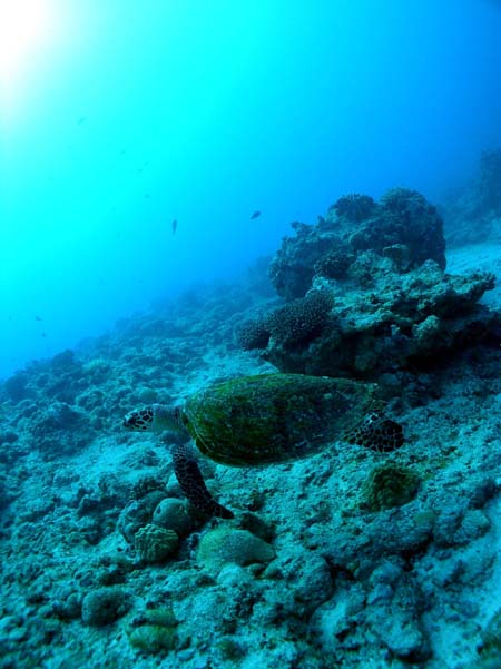 海がめは、穏やかな泳ぎと大きな甲羅が特徴の海の住人です。のんびり泳ぐ姿は癒されますね。