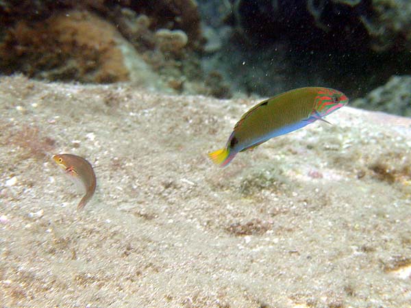 ヤマブキベラ 網代 2025.05.27 [ 網代 ][ 初級 ] 体長 10〜15cm程度 水深 1〜20m程度 生息環境 サンゴ礁や根周り 分類 スズキ目・ベラ科 ヤマブキベラは、黄色と青の体色がとても美しい魚です。根周りをちょこまか泳ぐ姿はとても癒されますね。 食べ物 小さな無脊椎動物や藻類を食べます。 日頃の生活 根周りを泳ぎながら餌を探しています。 まめ知恵袋 青と黄色の体色はとても目立ちますよ。 撮影する時のコツ マクロ撮影でもワイド撮影でも体色を活かすと綺麗な写真になります。 [ 網代 ][ 初級 ]