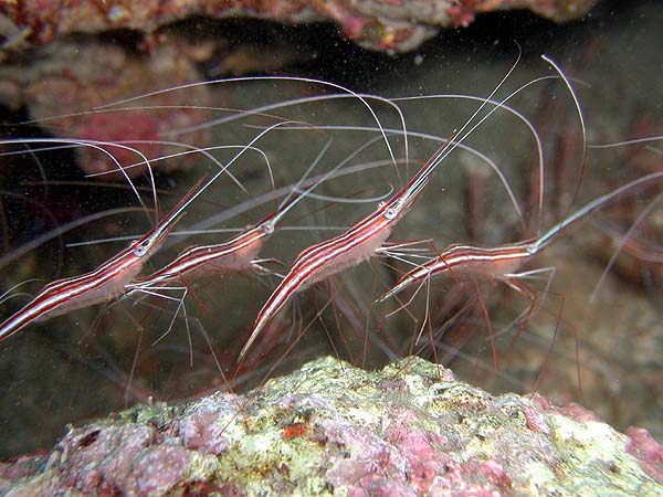 オキノスジエビ 小島 2025.05.27 [ 小島 ][ 上級 ] 体長 2〜3cm程度 水深 5〜30m程度 生息環境 サンゴ礁や岩礁の根周りや壁面 分類 十脚目・オキノスジエビ科 オキノスジエビは、赤と白の縞模様がとても綺麗な小さなエビです。隠れるように暮らす姿は癒されますね。 食べ物 プランクトンや微小な有機物を食べます。 日頃の生活 根周りの岩陰に隠れてじっとしています。 まめ知恵袋 縞模様はとても華やかですよ。 撮影する時のコツ マクロ撮影で模様をしっかり写すと可愛い写真になります。 [ 小島 ][ 上級 ]