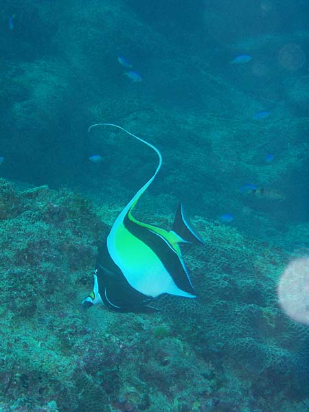 ツノダシ B-POINT前 2025.05.27 [ B-POINT前 ][ 中級 ] 体長 15〜20cm程度 水深 5〜30m程度 生息環境 サンゴ礁や岩礁の根周り 分類 スズキ目・ニザダイ科 ツノダシは、白と黒の縞模様と長い背びれがとても美しい魚です。優雅に泳ぐ姿はとても癒されますね。 食べ物 藻類や小さな無脊椎動物を食べます。 日頃の生活 根周りをゆっくり泳ぎながら餌を探しています。 まめ知恵袋 長い背びれはとても優雅で綺麗ですよ。 撮影する時のコツ ワイド撮影で背びれを活かすと美しい写真になります。 [ B-POINT前 ][ 中級 ]