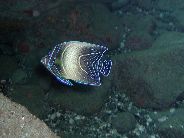 サザナミヤッコ 末粕鼻 2025.05.27 [ 末粕鼻 ][ 初級 ] 体長 20〜30cm程度 水深 5〜30m程度 生息環境 サンゴ礁や岩礁の根周り 分類 スズキ目・キンチャクダイ科 サザナミヤッコは、青い体に黄色い縁取りが美しい魚です。ゆったり泳ぐ姿はとても癒されますね。 食べ物 藻類や小さな無脊椎動物を食べます。 日頃の生活 根周りをのんびり泳ぎながら餌を探しています。 まめ知恵袋 青い体色は光に当たるととても綺麗です。 撮影する時のコツ ワイド撮影で体色の美しさを活かすととても綺麗な写真になります。 [ 末粕鼻 ][ 初級 ]