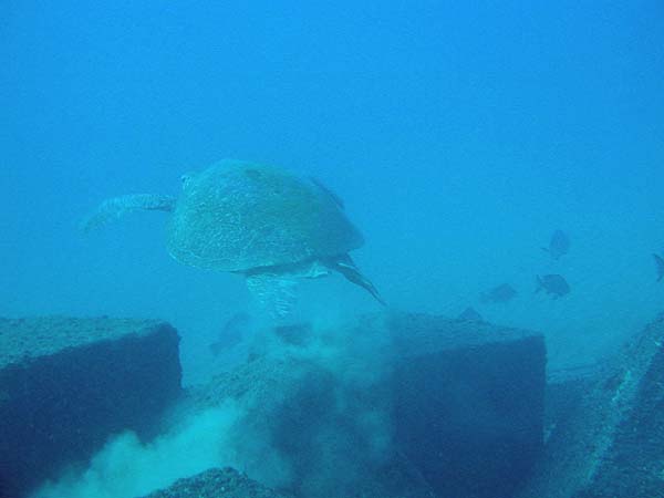 ウミガメ B-POINT前 2025.05.27 [ B-POINT前 ][ 上級 ] 体長 60〜100cm程度 水深 0〜30m程度 生息環境 サンゴ礁や砂地の浅場 分類 カメ科 ウミガメは、ゆったりと泳ぐ姿と大きな甲羅がとても魅力的です。のんびり泳ぐ姿は見ているだけで癒されますね。 食べ物 海草や藻類、小さな甲殻類を食べます。 日頃の生活 浅場をゆったり泳ぎながら、時々呼吸に浮上します。 まめ知恵袋 甲羅の模様はとても美しく、思わず見入ってしまいます。 撮影する時のコツ ワイド撮影で甲羅の美しさをしっかり活かすと素敵な写真になります。 [ B-POINT前 ][ 上級 ]