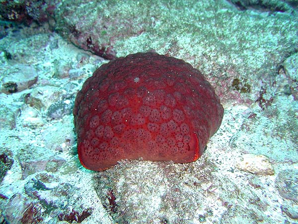 マンジュウヒトデ ブクブクビーチ 2025.05.27 [ ブクブクビーチ ][ 初級 ] 体長 15〜20cm程度 水深 1〜20m程度 生息環境 サンゴ礁や岩礁の根周り 分類 ヒトデ綱・マンジュウヒトデ科 マンジュウヒトデは、丸い体に小さな突起がとても可愛いヒトデです。じっくり観察すると色々な模様が見えて面白いですよ。 食べ物 付着藻類や微小な有機物を食べます。 日頃の生活 根周りの砂地や岩の上でじっとしています。 まめ知恵袋 丸い体はとても可愛くて癒されますよ。 撮影する時のコツ マクロ撮影で模様や質感をしっかり写すと可愛い写真になります。 [ ブクブクビーチ ][ 初級 ]
