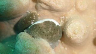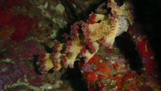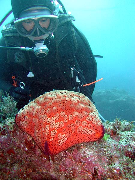 マンジュウヒトデ ブクブクビーチ 2025.05.27 [ ブクブクビーチ ][ 初級 ] 体長 15〜20cm程度 水深 1〜20m程度 生息環境 サンゴ礁や岩礁の根周り 分類 ヒトデ綱・マンジュウヒトデ科 マンジュウヒトデは、丸い体に小さな突起がとても可愛いヒトデです。じっとしている姿は癒し系で観察しがいがありますね。 食べ物 付着藻類や微小な有機物を食べます。 日頃の生活 砂地や根周りの岩の上にじっとしています。 まめ知恵袋 色々な模様が見られて面白いですよ。 撮影する時のコツ マクロ撮影で丸い体や模様をしっかり写すと可愛い写真になります。 [ ブクブクビーチ ][ 初級 ]